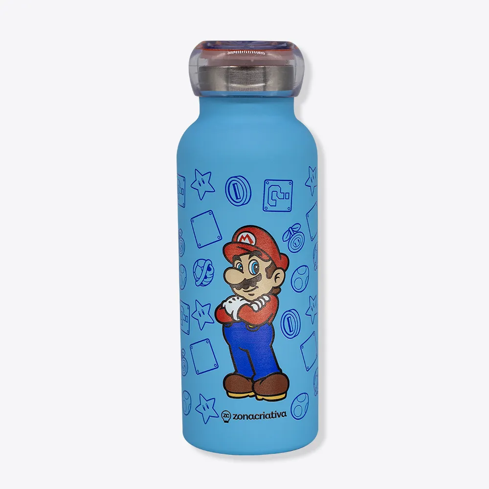 Depois de passar o dia todo tentando salvar a princesa Peach, você não consegue derrotar a sede? A gente te ajuda! Com 500ml de capacidade e feita em aço inoxidável, essa garrafa ajuda a manter a temperatura da sua bebida até nos dias mais quentes! Não importa qual é a aventura, essa garrafa te acompanha em todos os momentos!